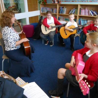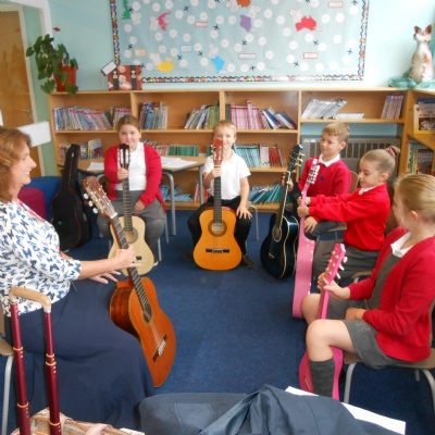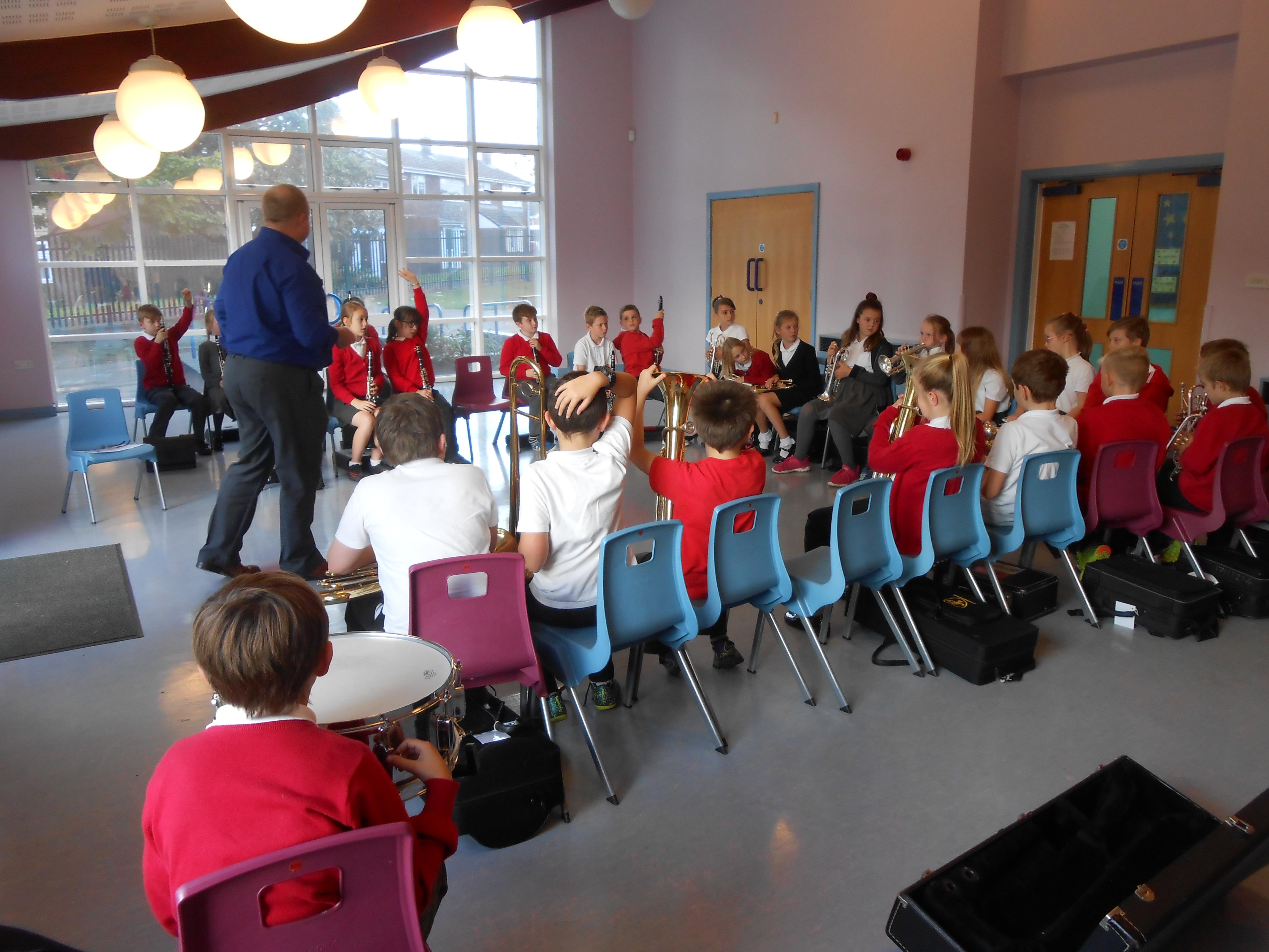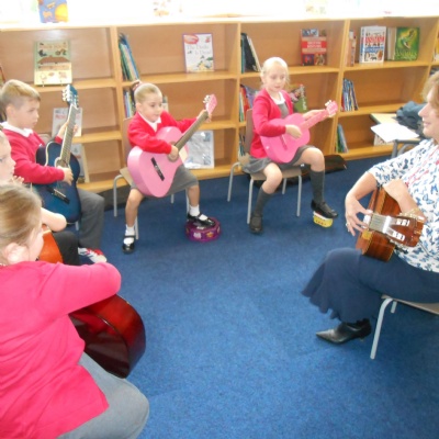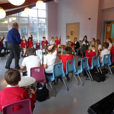 All year 5 children participate in the wider opportunities programme where they play in a band.